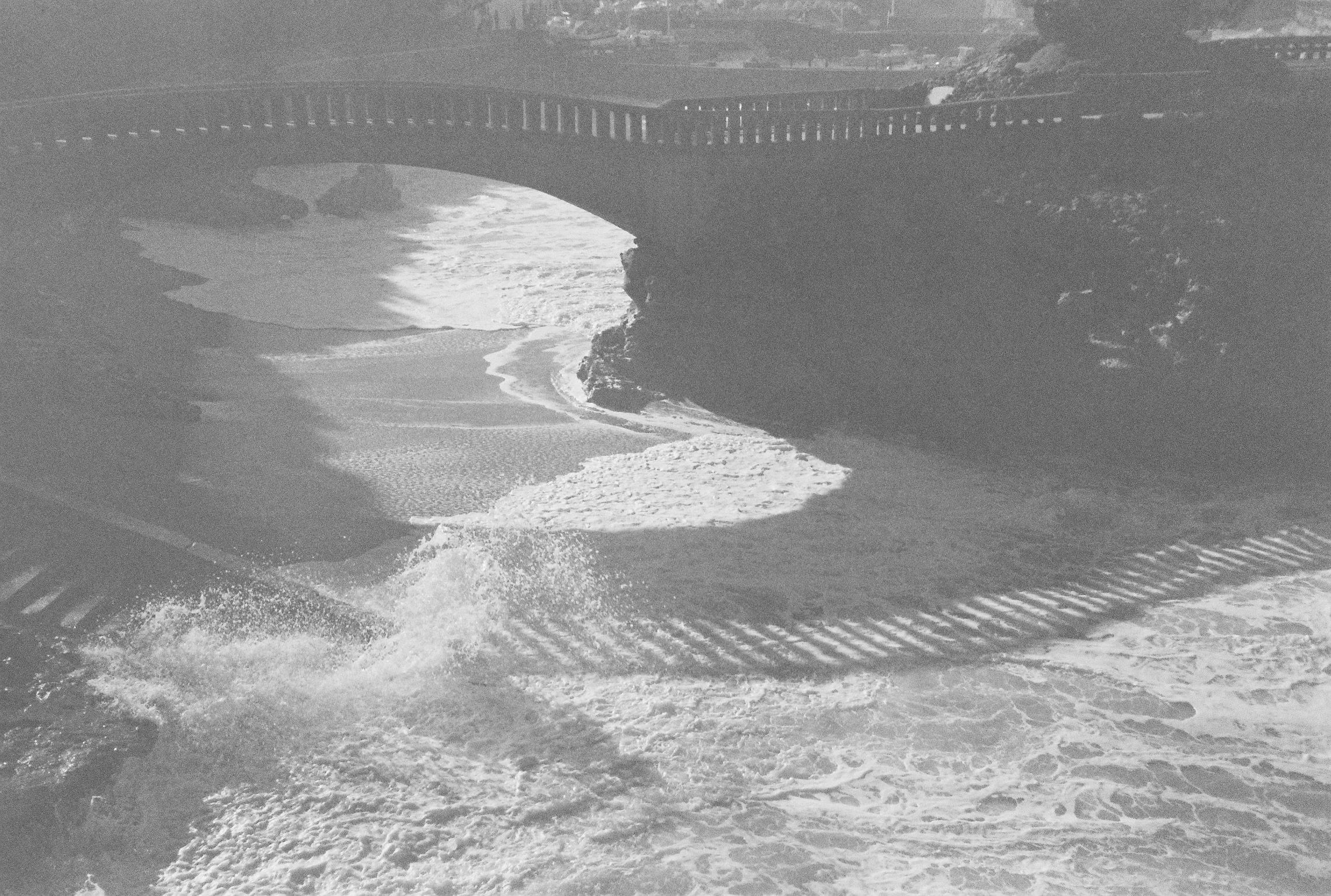 Pont en pierre au-dessus de la mer en noir et blanc Voir en taille réelle